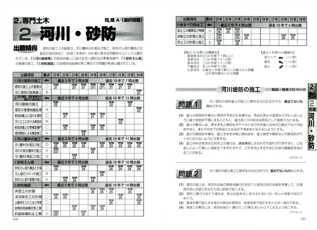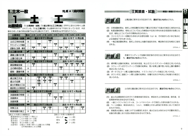 このような中で「合格」を勝ち取るためには、ご自身の専門外の「出題内容の傾向と対策」をしっかりと把握する必要があります。得意分野の再認識とともに苦手な分野の克服を図ることを容易に解決できるようにしました。平成23年度実施の「学科試験」全問題と解説・解答も分野別に掲載しております。 |