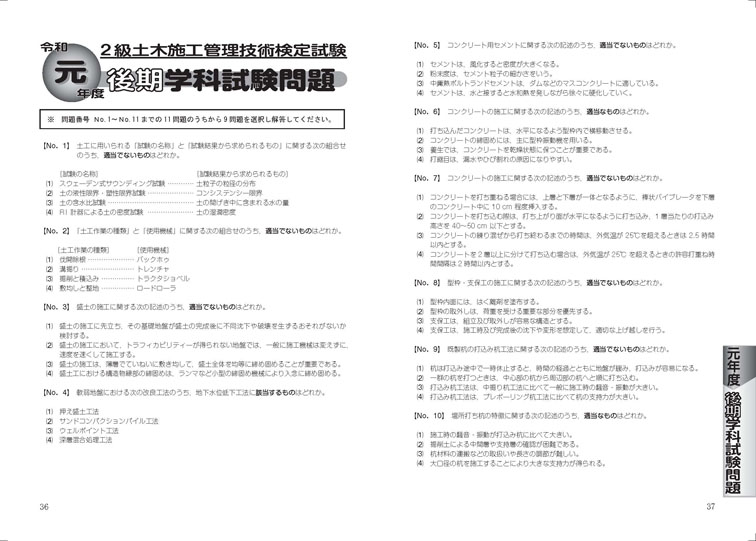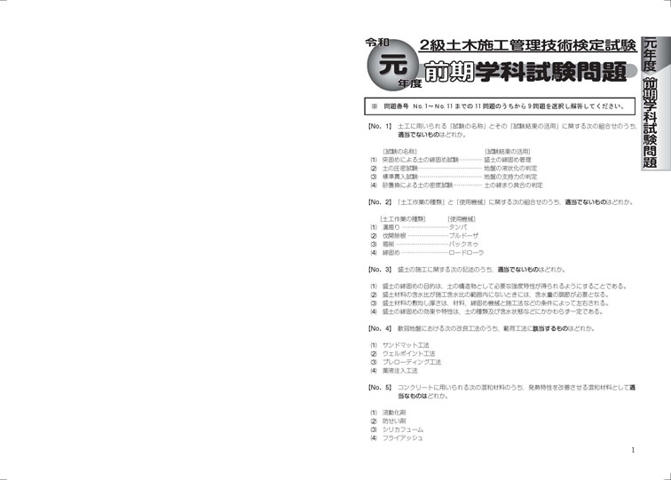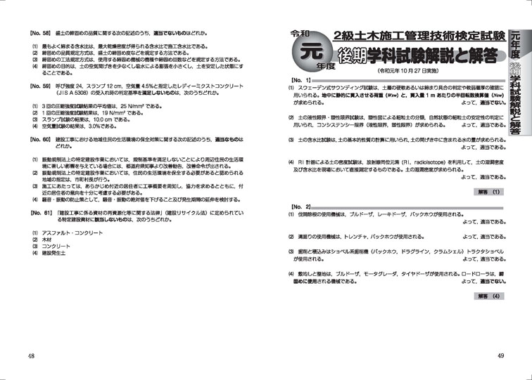 巻末には、令和5年度実施の「2級土木施工管理技術検定 第1次検定」の問題を収録し、解説・解答を掲載しました。
