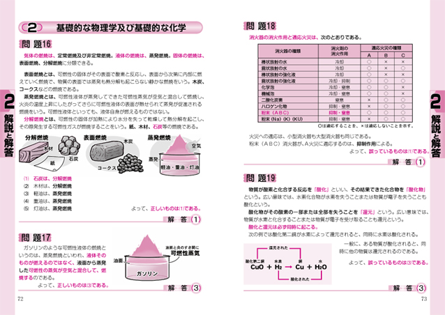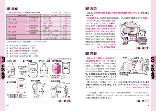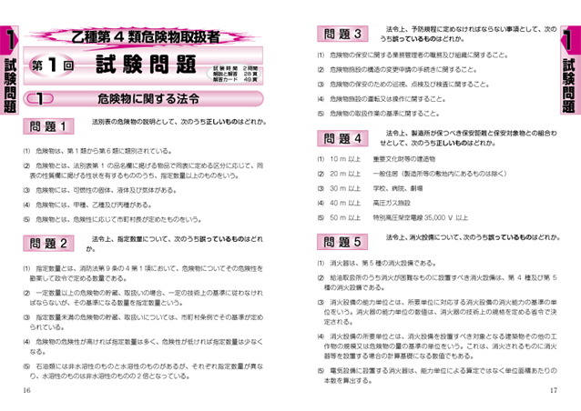 乙種第4類危険物取扱者試験」は、受験資格に学歴や年齢制限のない国家試験です。 乙種第4類危険物取扱者になると、ガソリンスタンドや化学工場等の施設にて、危険物(石油製品など)の取扱いができます。 本書では、過去に出題された問題の分析と最近の出題傾向を反映させ、厳選された問題を8回分掲載しました。 特に今年度版では、どなたにも読みやすいように解説文章を全面改訂しました。 「問題集」ではありますが、イラストを多用し、問題の選択肢の一つひとつについて、詳しく解説しているため、「テキスト」としても参考になるように編集されています。 本書を活用して多数の問題をこなせば、あなたの頭上にもきっと合格の栄冠が輝くことでしょう。